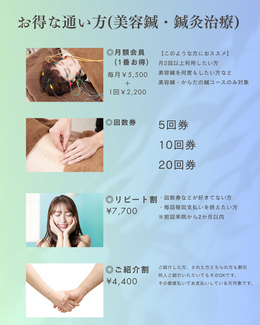 電気を流すと聞くと驚かれるかと思いますが、人体に流れている微弱な電流を調整することで痛みの緩和、体調の改善を図ることができる鍼灸治療です。